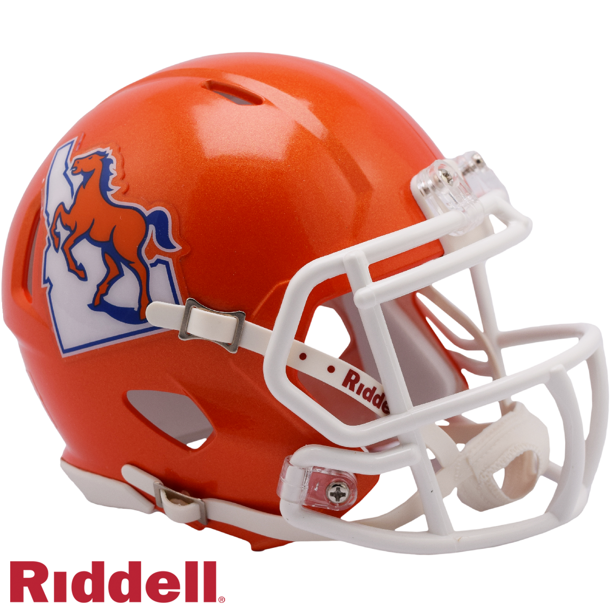Based on one of the most popular on-field designs, this collectible Speed Mini football helmet is made specifically for fans. At approximately 5.5 inches tall, this half-scale display helmet is perfect for all football fans and great for autographs. The helmet features a mini size Speed shell, the S2BD-SW-SP face mask, a 4-point chinstrap, and official paint and decals. The perfect collectible or gift! Made by Riddell.